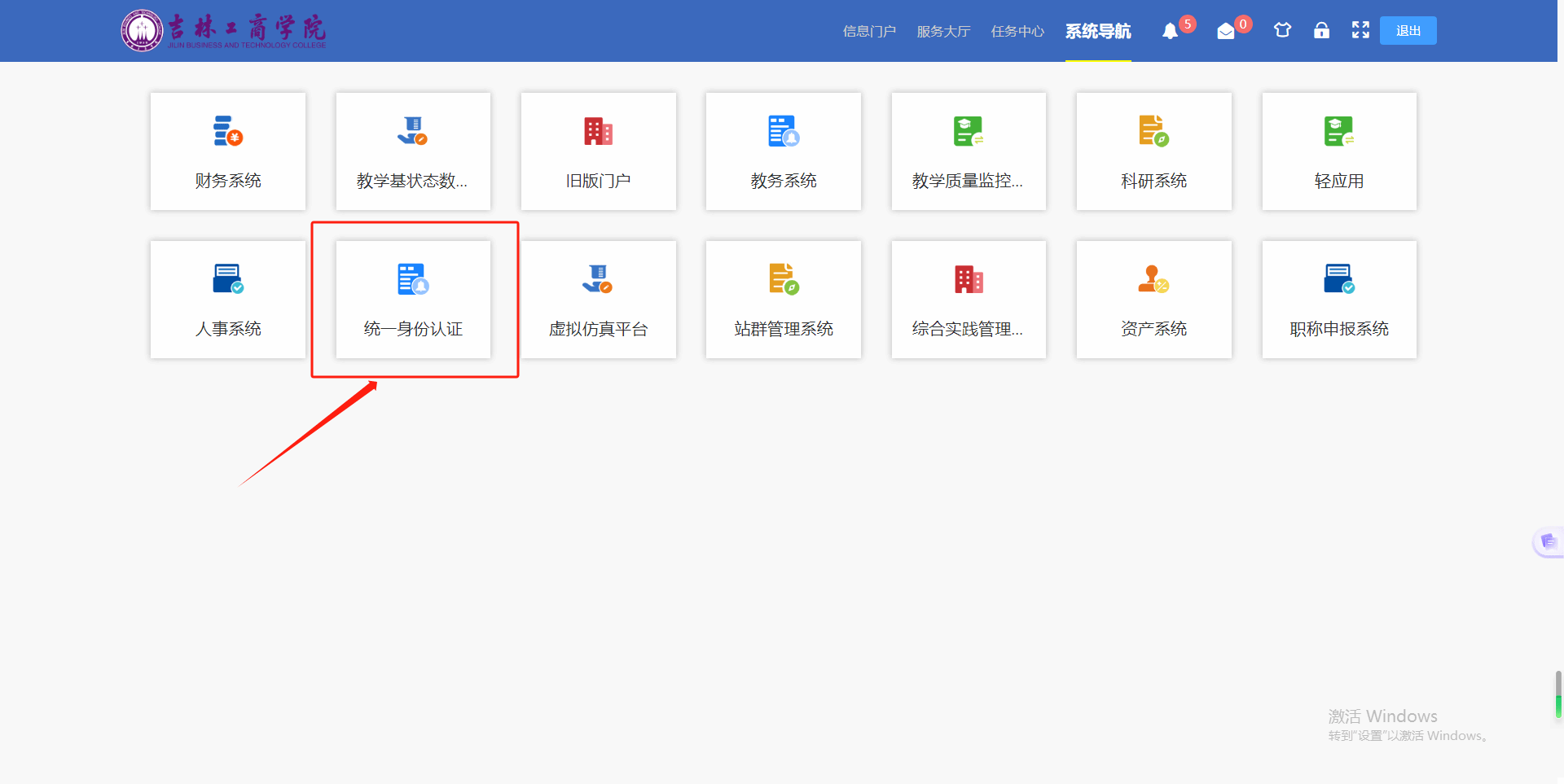 第一步:登陆“吉林工商学院”官网,点击统一身份认证入口,如下图